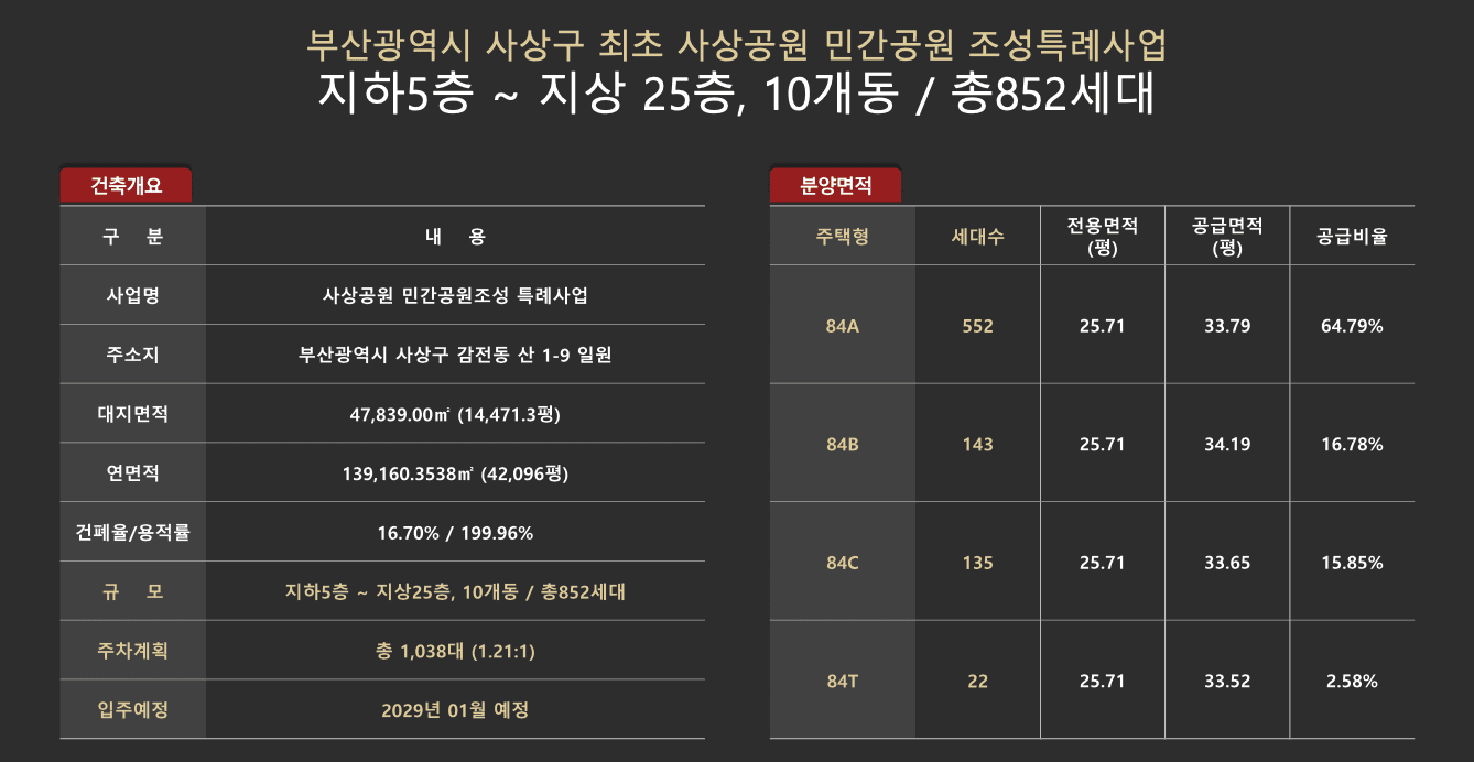 민간공원 특례사업으로 인한 사상공원 바로옆, 852세대 대단지 APT 34평형 테라스 호실까지,