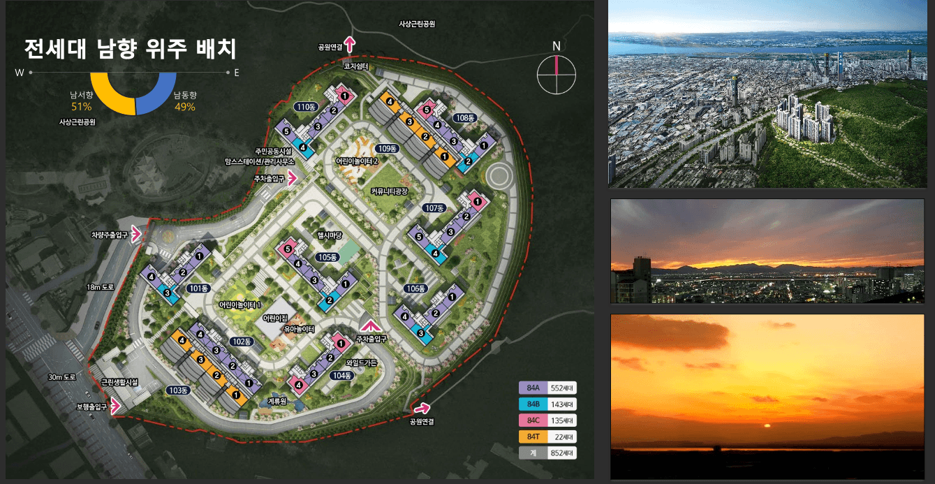 민간공원 특례사업으로 인한 사상공원 바로옆, 852세대 대단지 APT 34평형 테라스 호실까지, 역세권 입지에 낙동강 뷰까지 만나보세요.